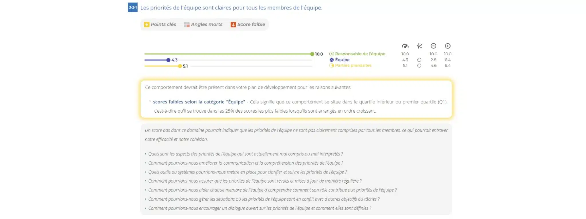 La plateforme identifie pour vous les points clés d’amélioration et donne à l’équipe des pistes de réflexions.