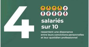 Parmi le tiers des salariés se sentant désengagés du projet de leur entreprise, 75% d’entre eux ressentent ce décalage entre convictions personnelles et action en entreprise.